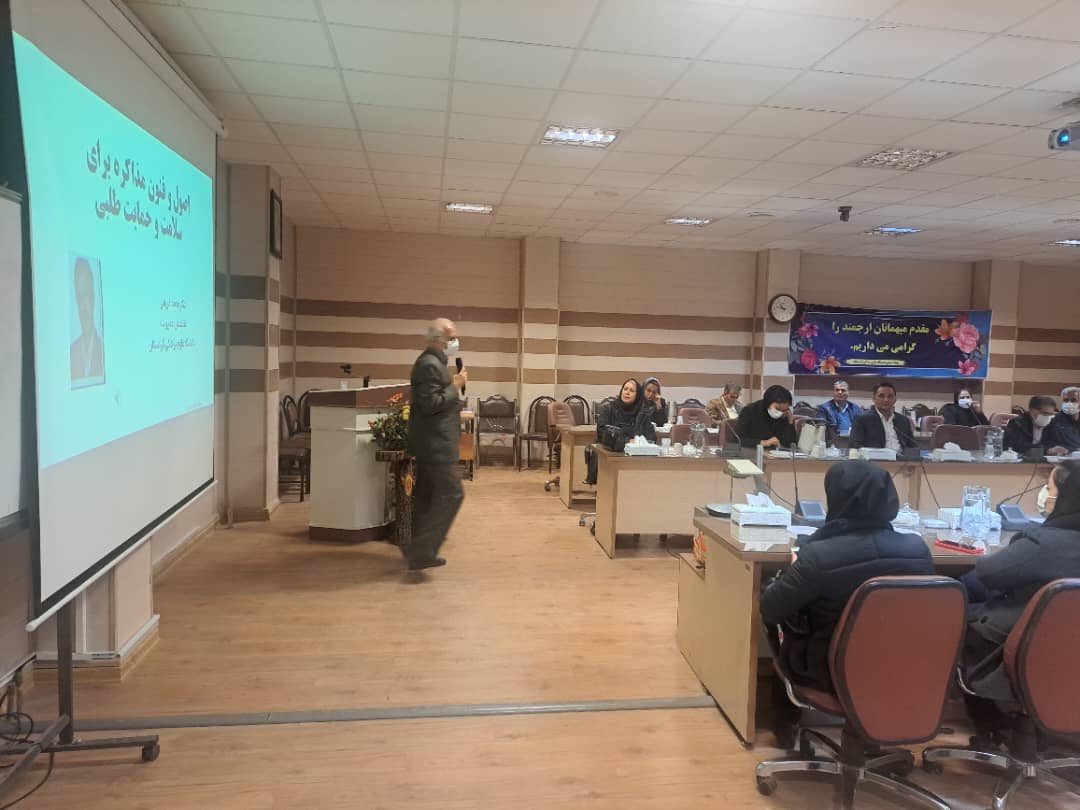 سپس دکتر کریمی، رئیس خانه مشارکت مردم در سلامت استان، به تشریح مفاهیم کلیدی اصول مذاکره مؤثر و حمایتطلبی اجتماعی پرداخت و بر نقش گفتوگوی سازنده و تعامل اثربخش در ارتقای سلامت جامعه تأکید نمود.