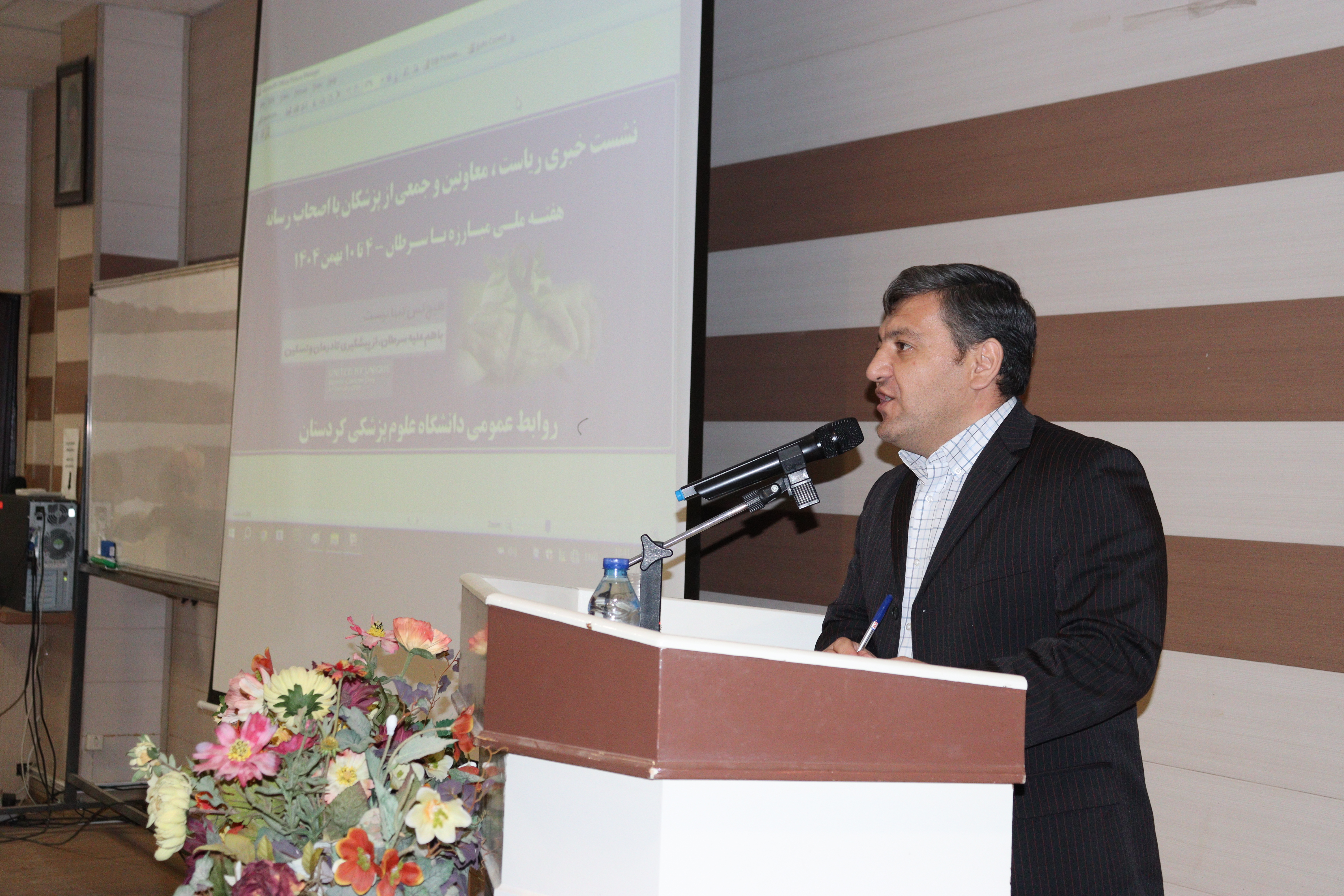 مدیر روابط عمومی دانشگاه علوم پزشکی کردستان با اشاره به هفته ملی مبارزه با سرطان در ایران که از چهارم تا دهم بهمن‌ماه با شعار «هیچ‌کس تنها نیست؛ با هم علیه سرطان از پیشگیری تا درمان و تسکین» برگزار می‌شود، افزود: میزبانی از اصحاب رسانه در این هفته برای دانشگاه علوم پزشکی کردستان افتخار بزرگی است و این حضور نشان‌دهنده اهمیت جایگاه رسانه در کنترل و پیشگیری از سرطان است.